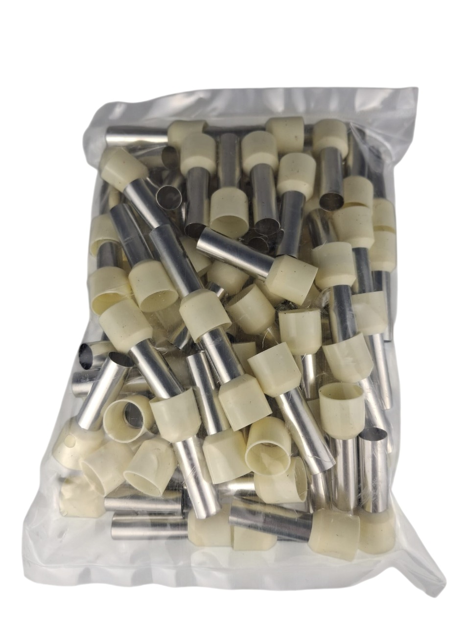 Set 100 pini terminali izolati lungi 35mm² albi ferule cupru 25mm