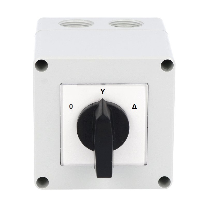 Comutator pornire motor stea-triunghi 63A 18.5kW 3 poli industrial cu came PACO rotativ IP65 125x175mm