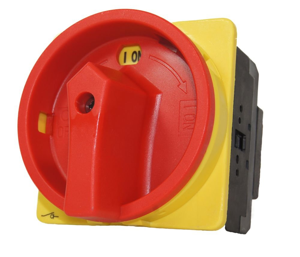 Intrerupator principal 63A 3 poli 22kW de urgenta incastrat cu placa galbena frontala 88x88mm IP65