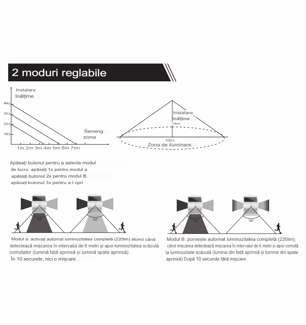 - Distanța de detectare a senzorului de mișcare: max. 6 metri