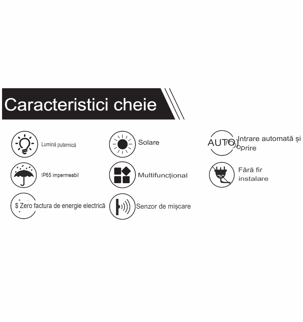 Această lumină ON/OFF automată, alimentată cu energie solară, are un senzor de mișcare, astfel încât se aprinde doar atunci când aveți nevoie. Timpul lung de iluminare, rezistența la intemperii IP65 și bateria înlocuibilă asigură durabilitate. Datorită instalării fără fir, îl puteți instala cu ușurință oriunde. Iluminat durabil cu eficienta maxima!