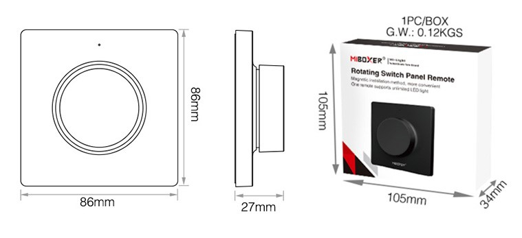 Miboxer Buton Mi-Light MiBoxer și panou de comutare rotativ Telecomandă LED neagră K1 wireless maxim 30m