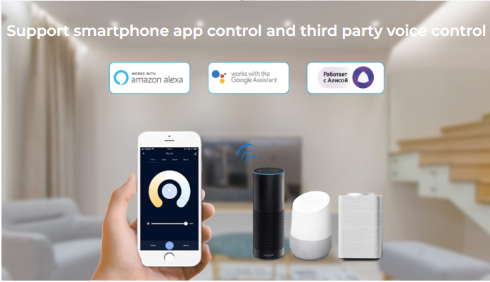 Acceptă controlul aplicației pentru smartphone și controlul vocal de la terți