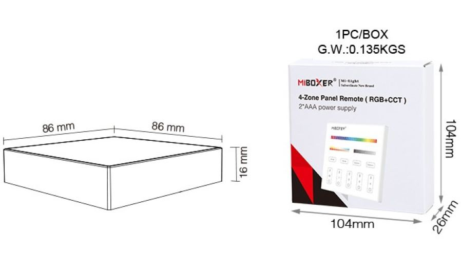 Telecomandă cu panou MiBoxer B4 cu 4 zone (DIM+RGB+CCT)