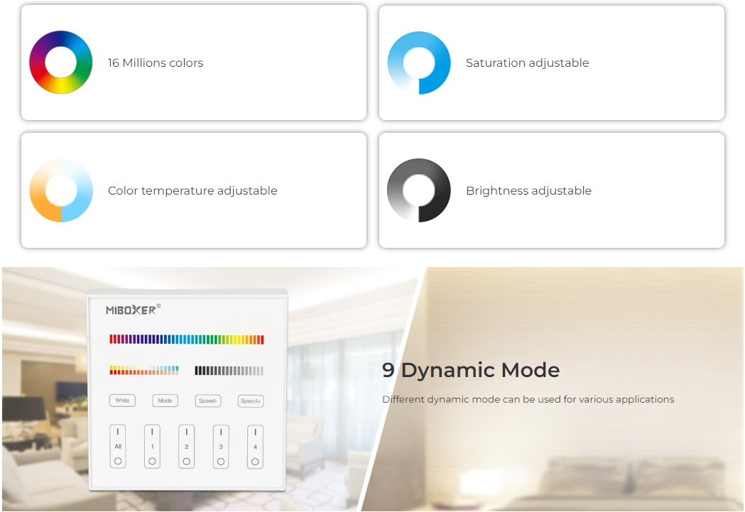 • Suporta seria MiBoxer/Mi-Light 2.4G