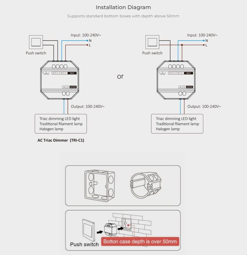 TRI-C1 AC Triac RF + Push Dimmer