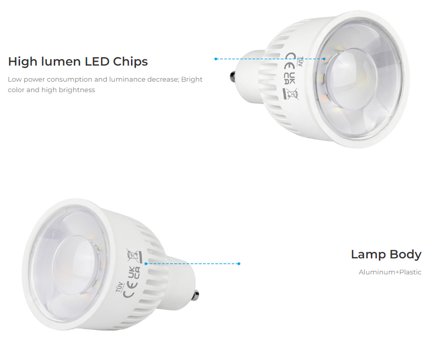Bec LED 6W GU10 RGB+CCT LED Spotligh 550lm 90lm/W 2700K~6500K, 16 milioane de culori intensitatea luminii ajustabila, control de la distanta 30m 2.4GHz