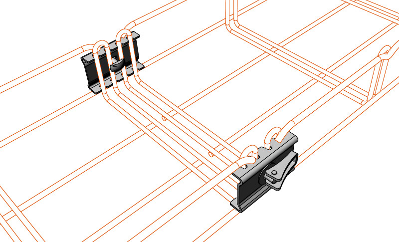 Amplasarea corectă a cuplajelor pe peretele lateral al jgheabului din plasă este importantă pentru atingerea capacității de încărcare declarată precum și a rigidității optime a canalului cu plasă asamblată, așa cum se arată în figuri. Este de o importanță esențială în special pentru jgheabul  din sârmă cu o înălțime de 100 mm a peretelui lateral care necesită amplasarea piesei de joncțiune direct sub marginea superioară a jgheabului.