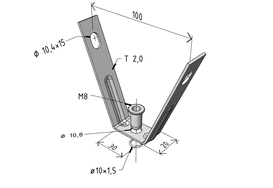 Trapezul servește la ancorarea tijelor filetate M8 în acoperișuri și intradose cu placare din tablă trapezoidală.