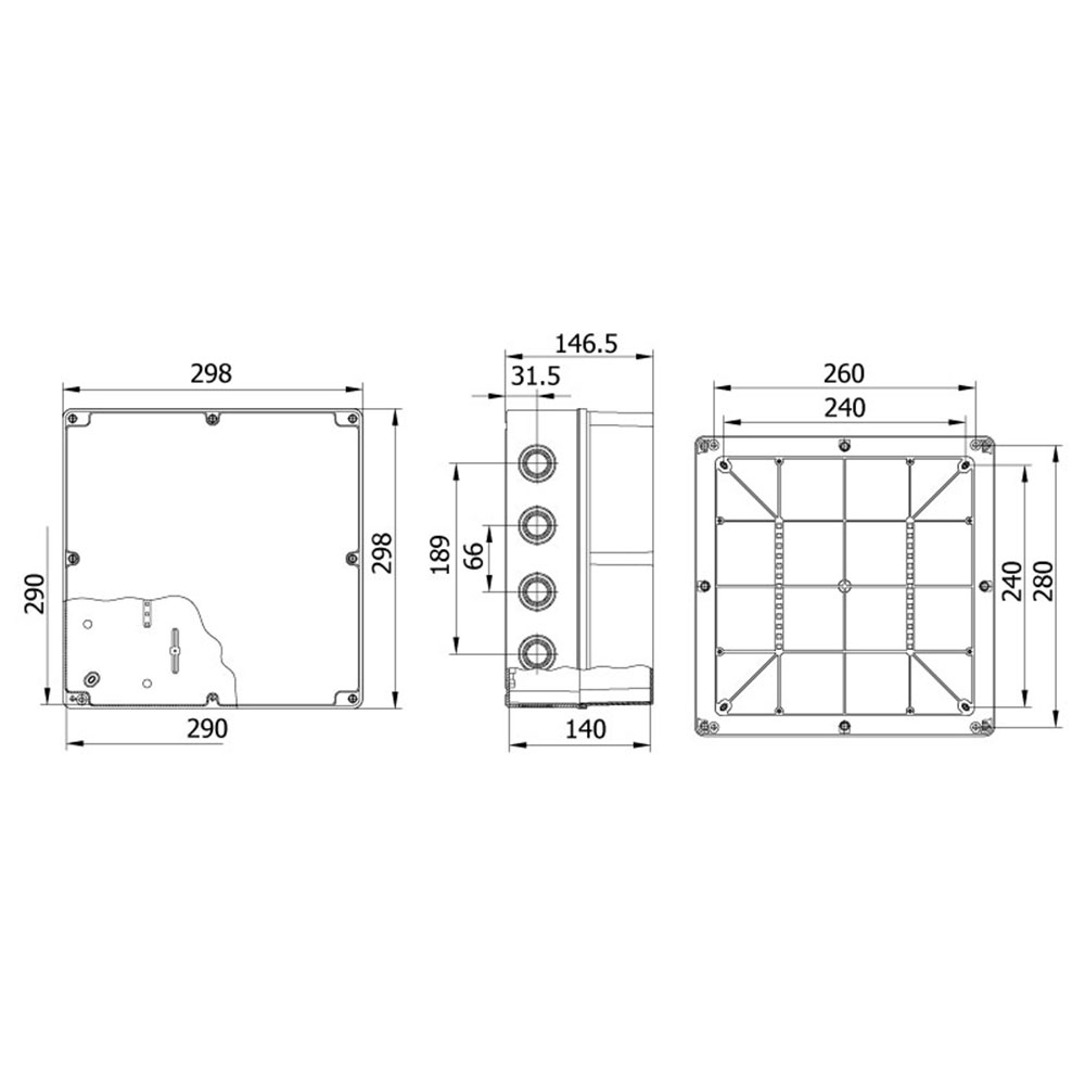 Doza de ramificatie aplicata ABS 290x290x140mm IP67 IK06 transparenta