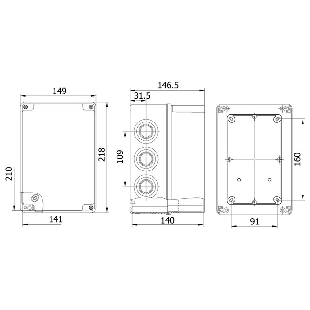 Doza dreptunghiulara de ramificatie din plastic adanca ABS 210x140x140mm IP67 IK06