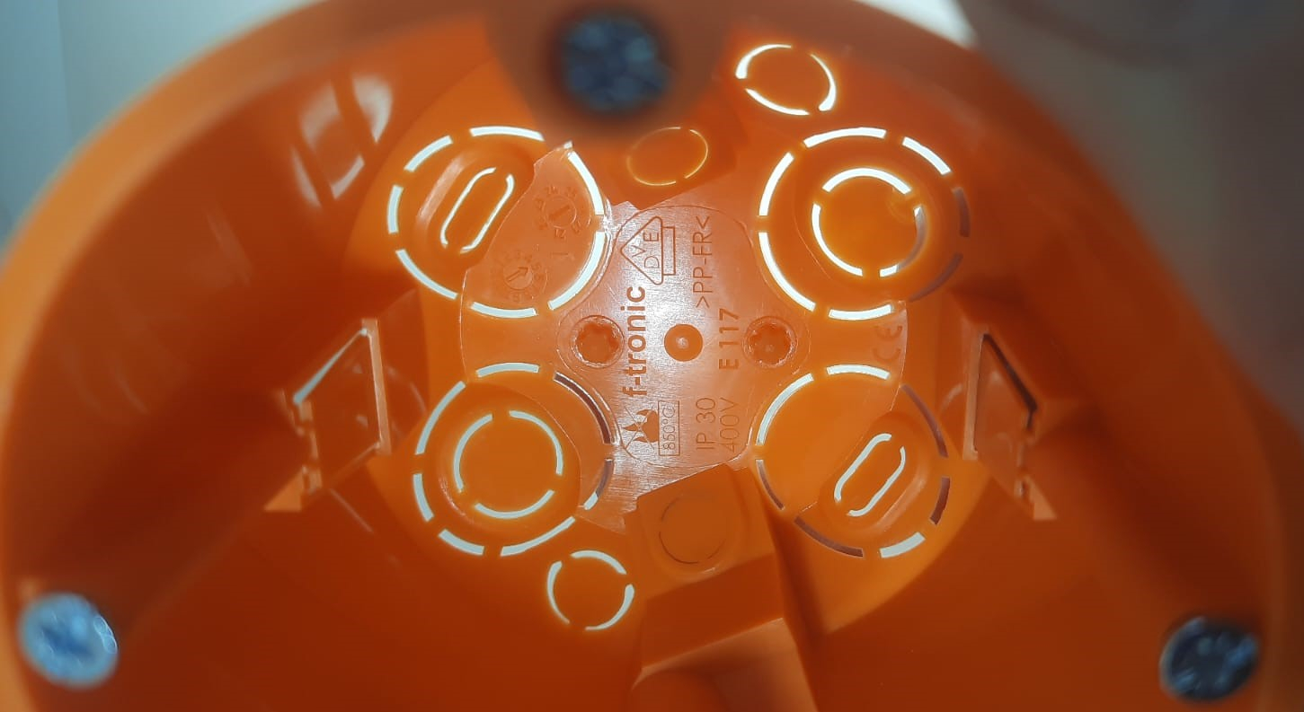 F-TRONIC Doza aparataj rigips adanca diametru: 68mm, adancime: 61mm cu gauri predecupate pentru cabluri si tuburi IP30