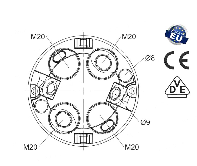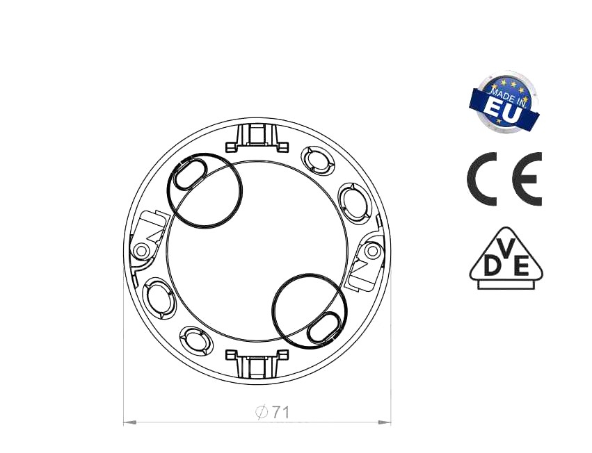 Doza aparataj rigips adanca diametru: 68mm adancime: 61mm cu gauri predecupate pentru cabluri si tuburi IP30