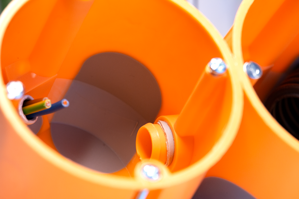 Deschiderea de conectare permite cablarea etanșă garantată prin intermediul pieselor de legătură.
