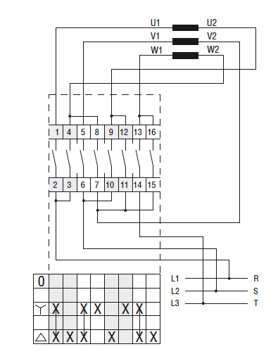 Comutator pornire motor stea-triunghi 32A 11kW 3 poli industrial cu came PACO rotativ IP40 65x65mm