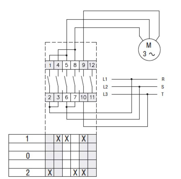 Comutator rotativ inversor de sens motor 32A 11kW 3 poli 1-0-2 IP65 90x90mm