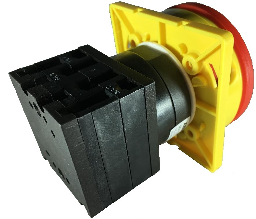 Intrerupator principal 32A 3 poli 7.5kW de urgenta incastrat cu placa galbena frontala 66x66mm IP65