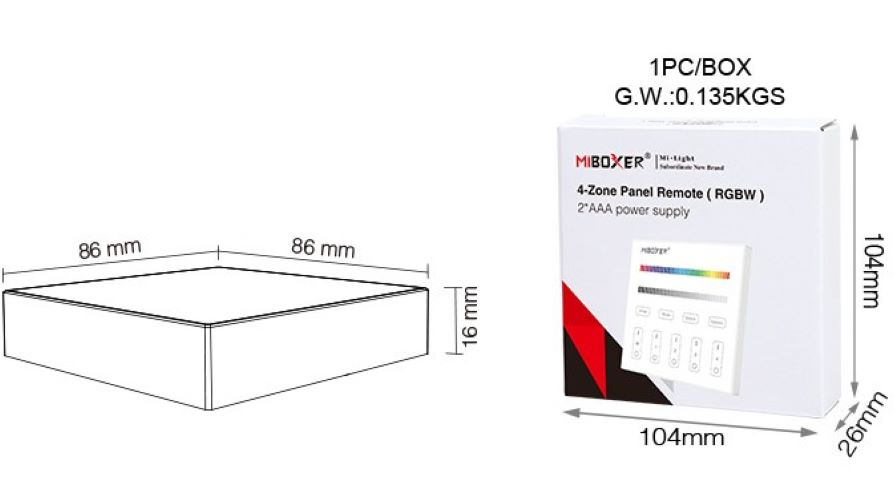 Telecomandă cu panou cu 4 zone MiBoxer B3 (RGBW)