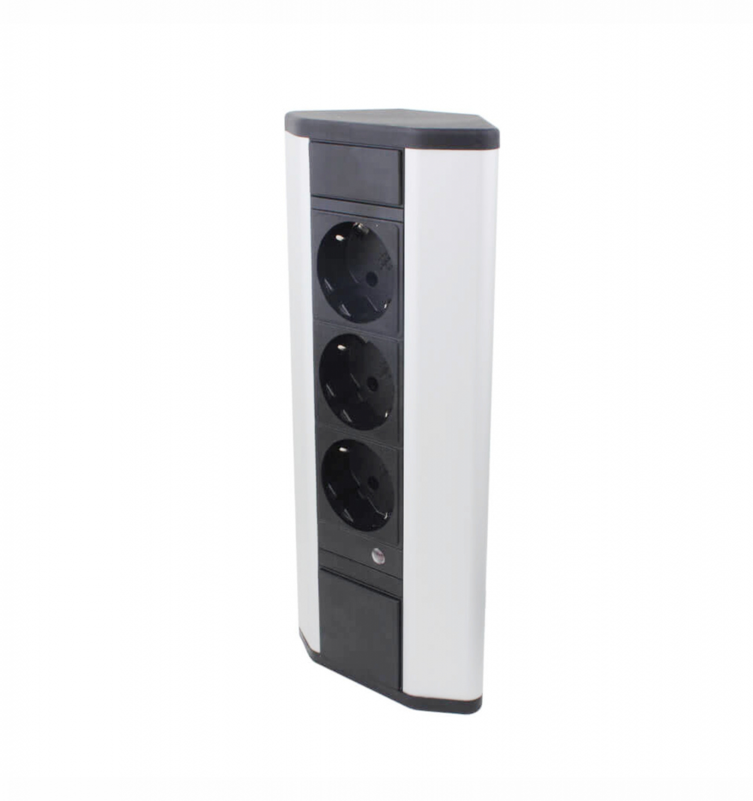 Prelungitor grup 3 prize schuko pentru colt montaj pe blat sau birou 16A 3680W 230V cablu 1.8 metri 3G1.5 si led indicator de prezenta tensiune