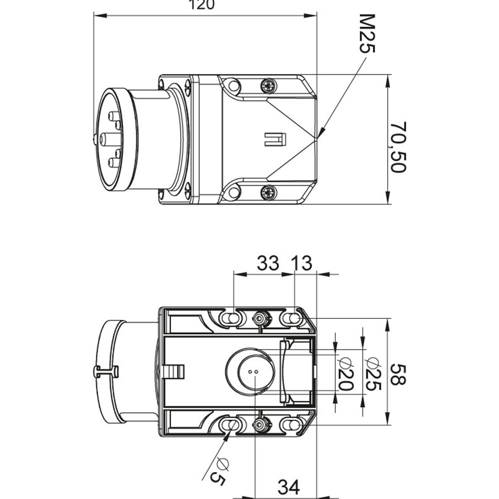Conexiune Monofazică: Cu 3 poli (2P+PE), această fisa stecher este special concepută pentru conexiuni monofazice, oferind o distribuție eficientă și echilibrată a curentului.
