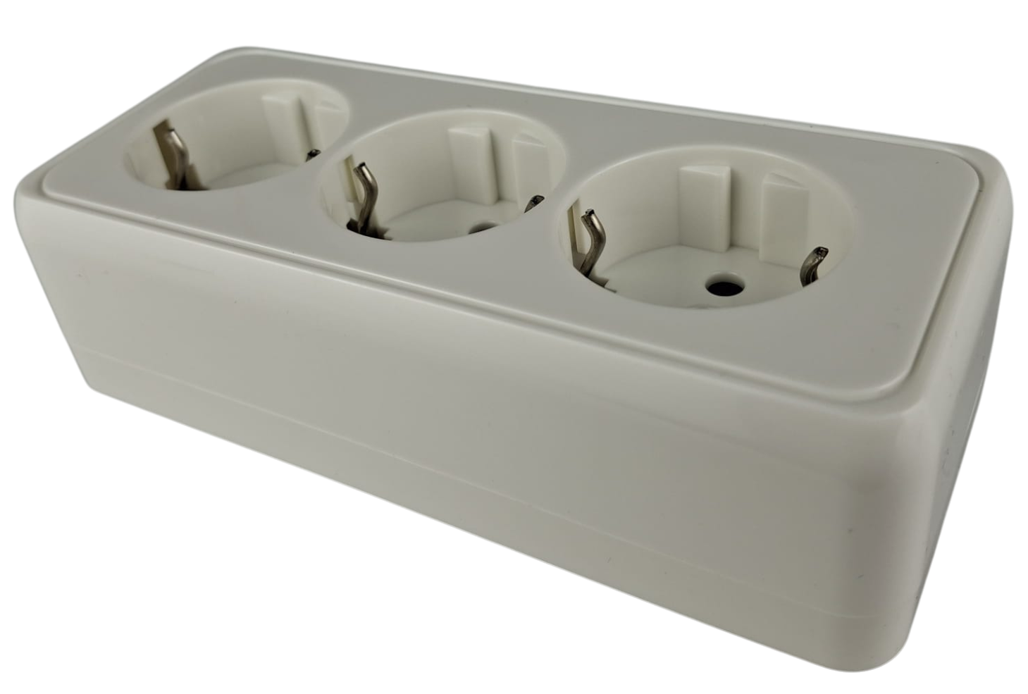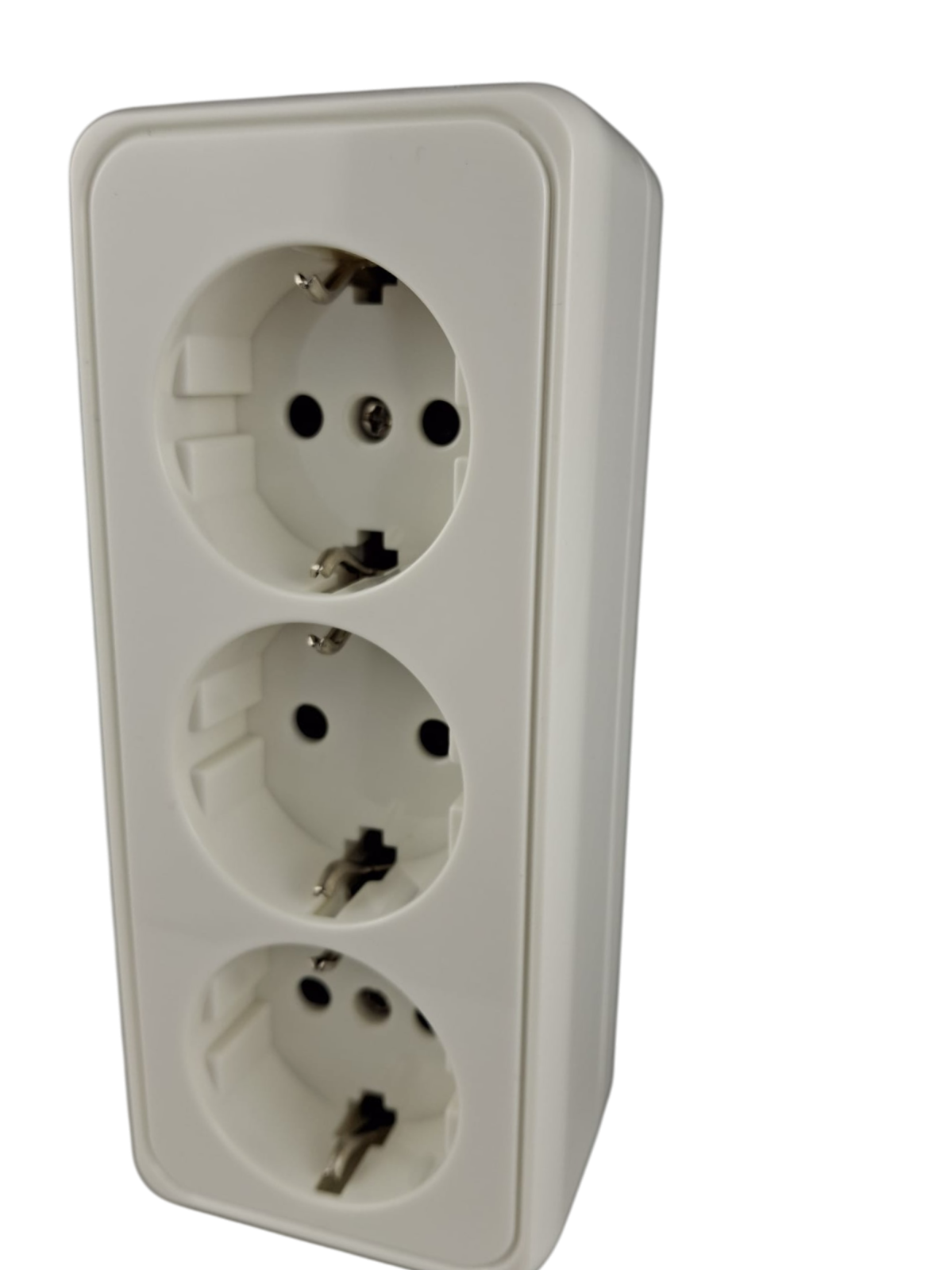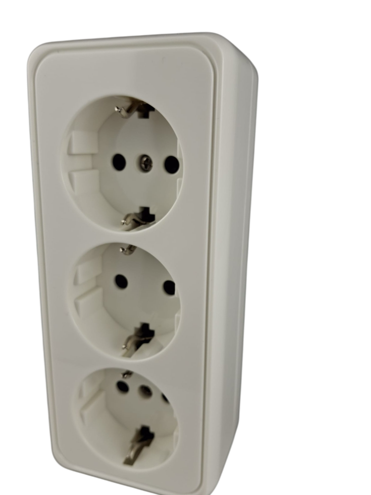 Priza tripla alba aplicata 16A cu CP si protectie copii IP20 150x65mm