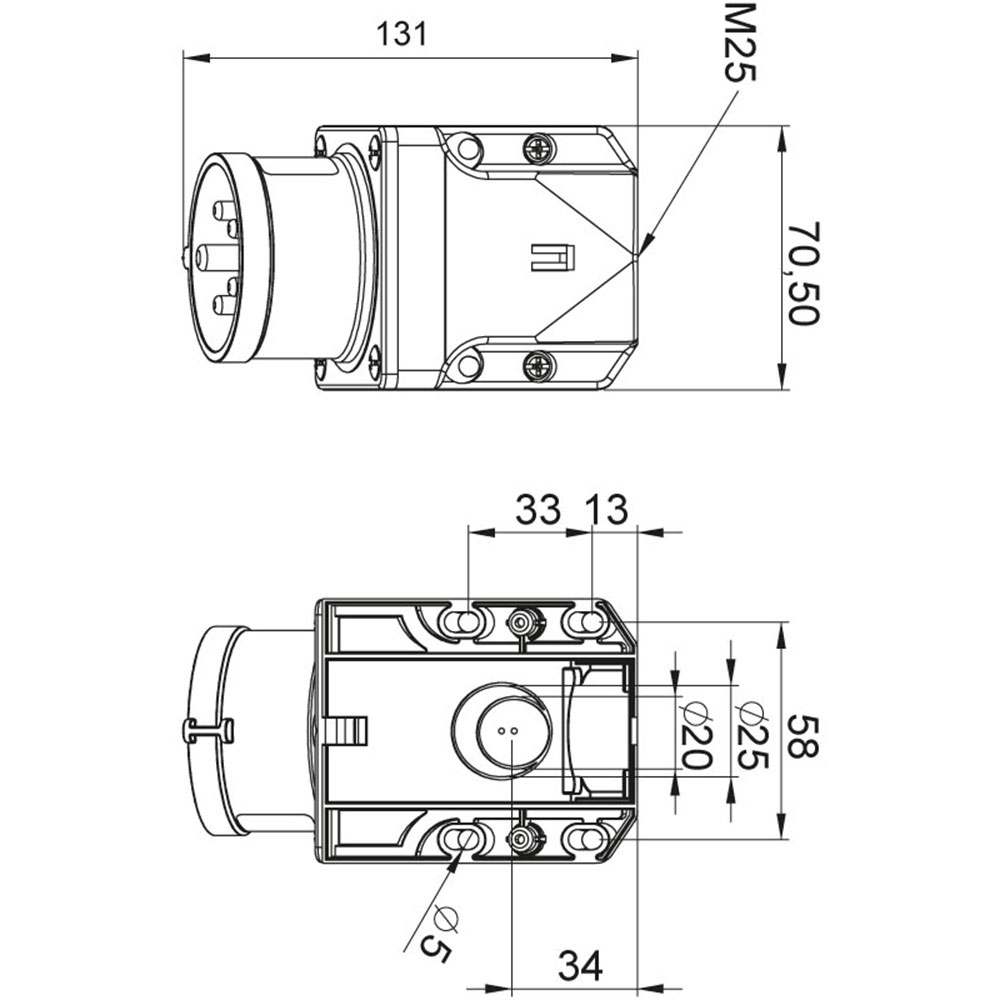 Conexiune Trifazică: Cu 4 poli (3P+PE), această fisa stecher este special concepută pentru conexiuni trifazice, oferind o distribuție eficientă și echilibrată a curentului.