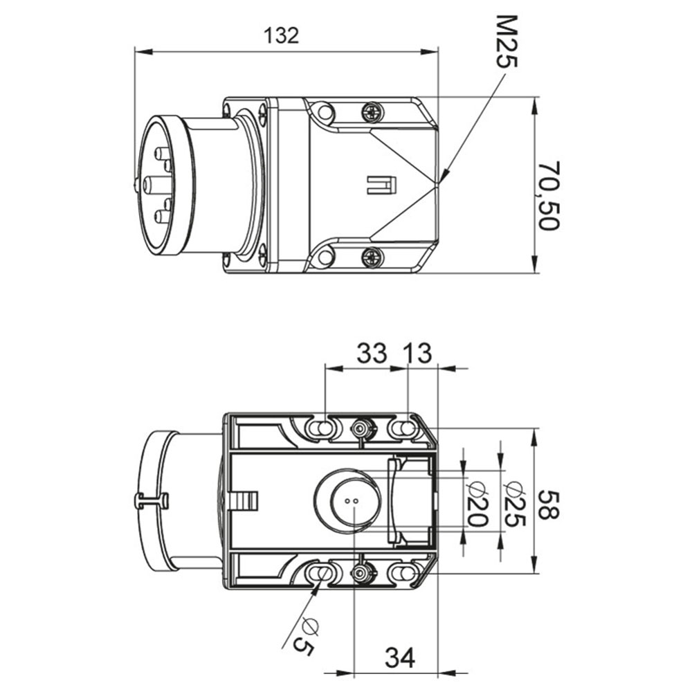 Conexiune Trifazică: Cu 5 poli (3P+N+PE), această fisa stecher este special concepută pentru conexiuni trifazice, oferind o distribuție eficientă și echilibrată a curentului.