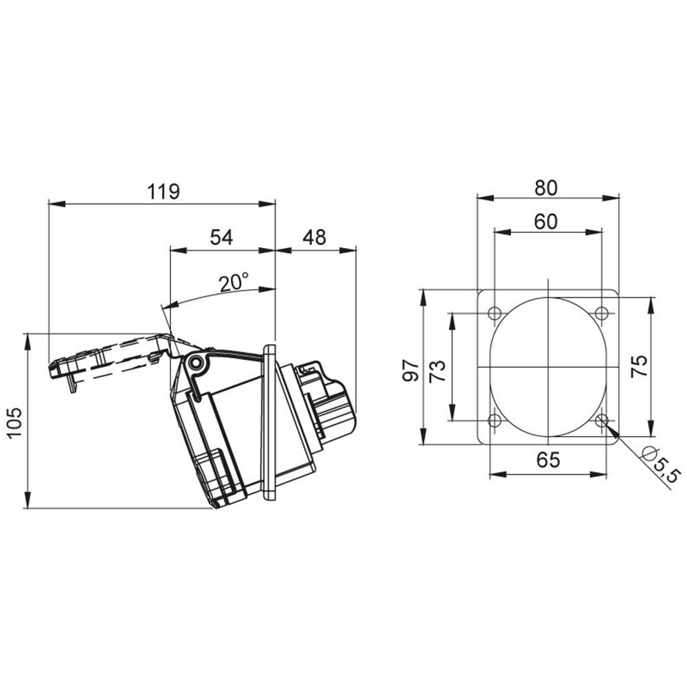 Investește acum în calitate și siguranță cu Priza Trifazică incastrabila oblica 4 Poli 32A 3P+E 6h 380V IP44 - partenerul perfect pentru alimentarea ta electrică exigentă!