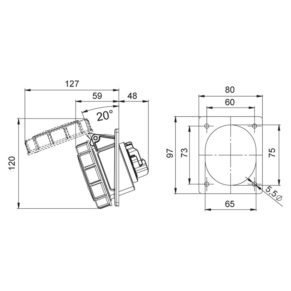 Investește acum în calitate și siguranță cu Priza Trifazică incastrabila oblica 4 Poli 32A 3P+E 6h 380V IP67 - partenerul perfect pentru alimentarea ta electrică exigentă!