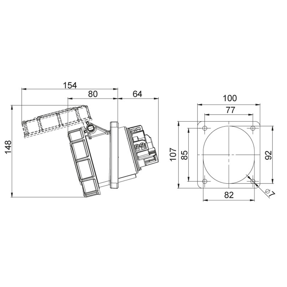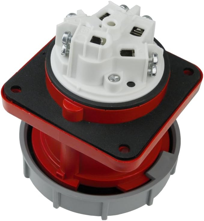 Investește acum în calitate și siguranță cu Priza Trifazică incastrabila oblica 5 Poli 63A 3P+N+E 6h 380V IP67 - partenerul perfect pentru alimentarea ta electrică exigentă!