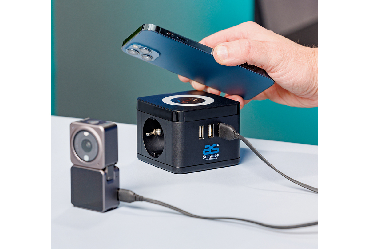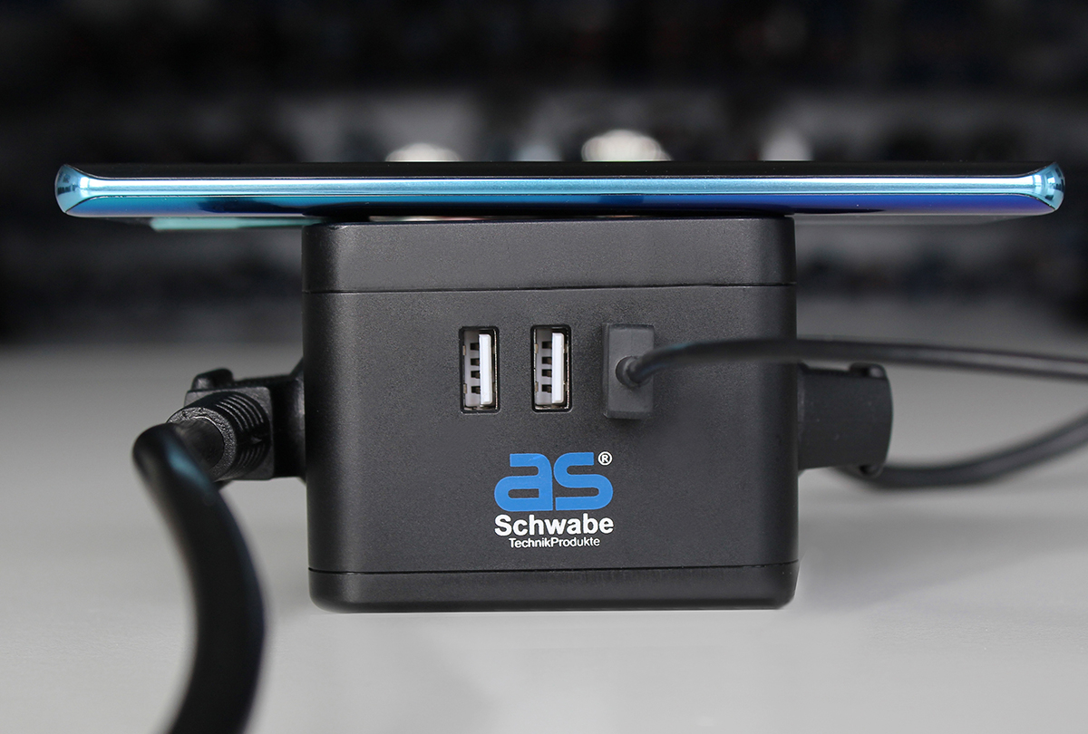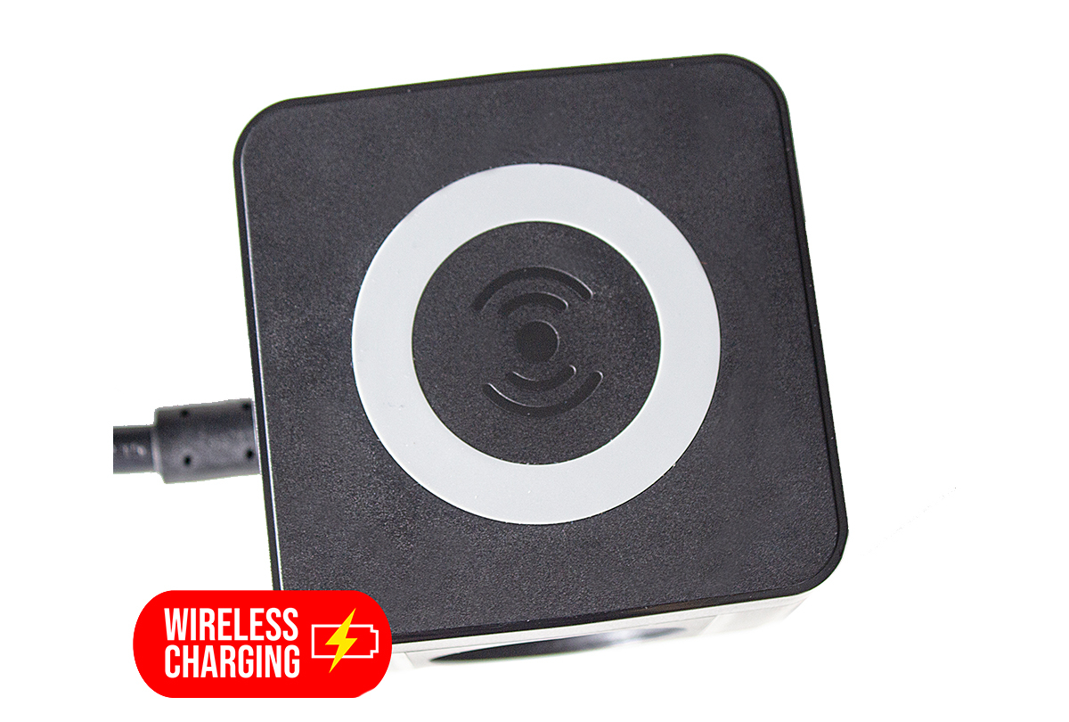Prelungitor statie de incarcare 1.5m cablu H05VV-F 3G1.5 cu 2 prize schuko 16A 3 porturi USB 5V 2.4A si incarcare wireless 5W prin inductie maxim 3500W IP20