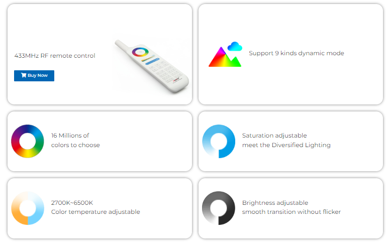 Telecomanda de 433 MHz. 16 milioane de culori, temperatura culorii, luminozitatea și saturația pot fi ajustate aleatoriu
