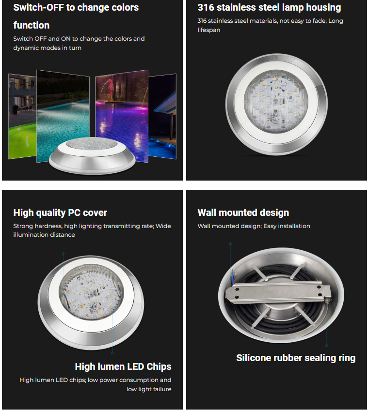 • Distanța maximă de control 50 m (Lămpi 0,5 m sub apă)