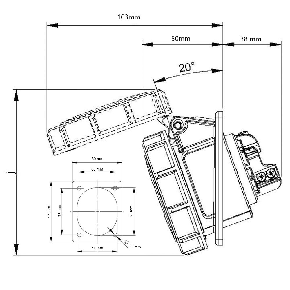 • Încastrabilă: Designul încastrabil al prizei asigură o integrare discretă în structura mediului tău industrial, contribuind la un aspect ordonat și sigur.