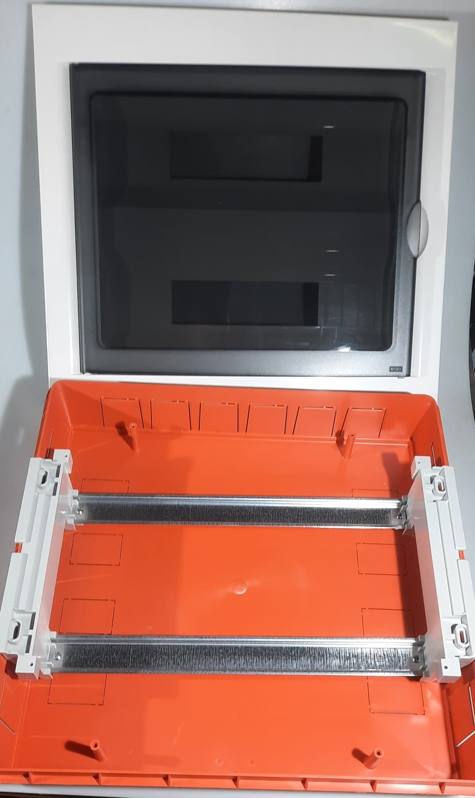 • Eticheta autocolanta pe usa electrica • Cutie de distributie rezistenta din polistiren portocaliu •