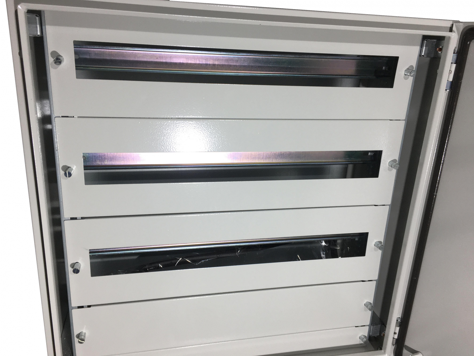 Tablou electric 600x600x250mm 78 module cofret dulap cabinet metalic modular 3 randuri IP66 aparent cu plastroane sina DIN pentru montaj contrapanou placa de montaj